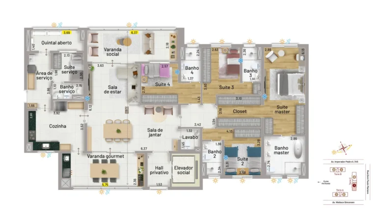 Épic Nova Petrópolis 163m² - 3 suítes (Opção com 2 banheiros na suíte master)