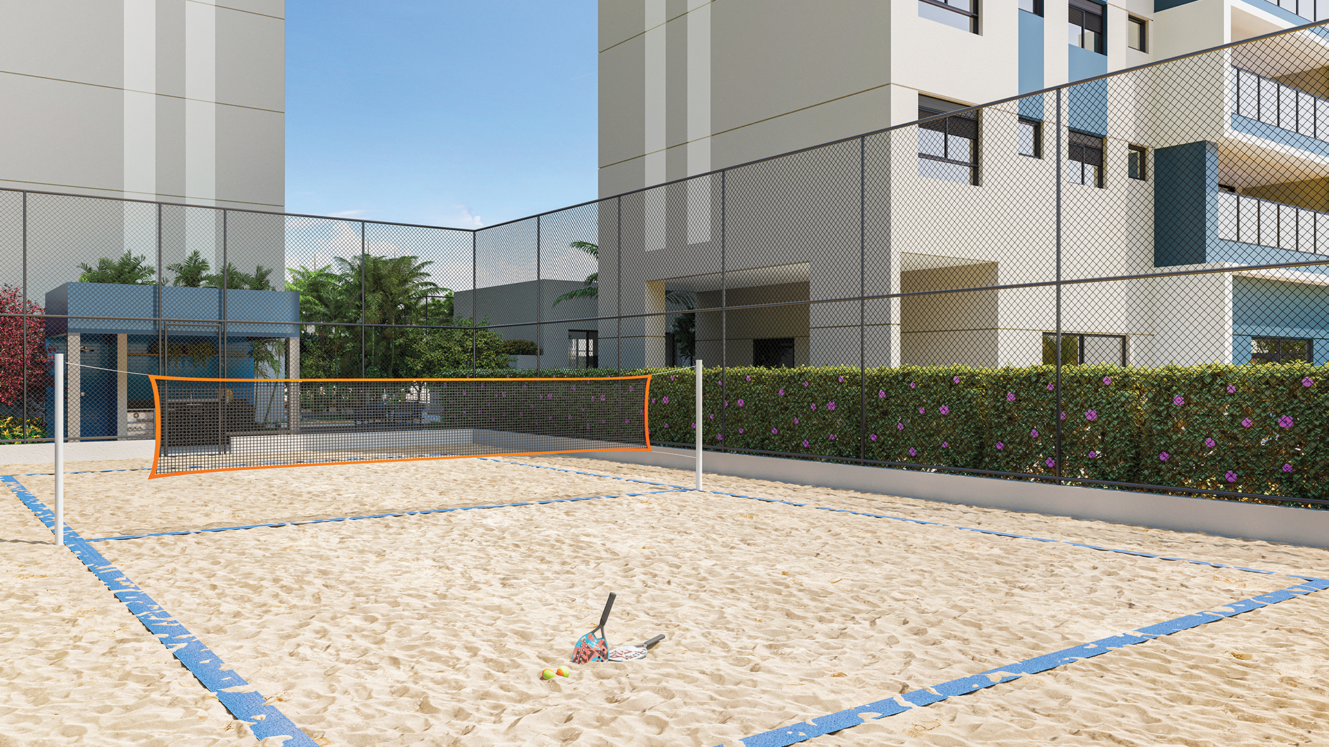 Para completar a lista de itens de lazer de resort, vale destacar que o condomínio tem quadra de beach tennis, além de academia ultramoderna que conta com uma área muito espaçosa de 150m².