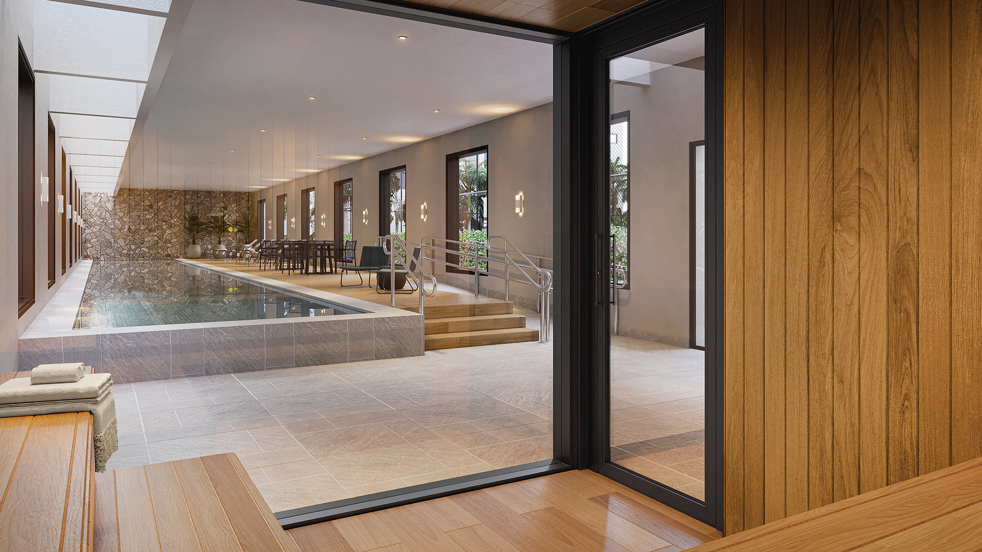 Destaque para a quadra de tênis, inédita na região, e um deslumbrante complexo aquático, que inclui uma piscina familiar com entrada estilo prainha…